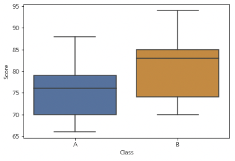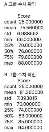 결과를 확인하니, B 그룹이 더 성적이 높게 나왔군요(5.8 정도 차이).
