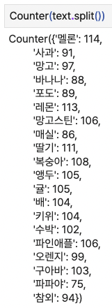Counter 함수에 앞에서 설명한 split으로 변환한 리스트를 넣어줄 경우, 단어 수를 제대로 셀 수 있습니다.