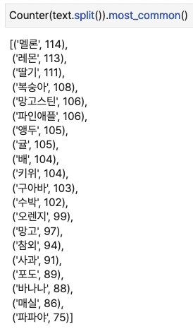 - Most_Common 명령어로 쉽게 빈도수 결과를 편집할 수 있다.