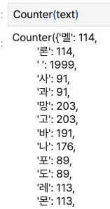 앞선 설명에서 제시한 바처럼, collections 패키지에 포함된 Counter는 추가적인 설치 없이 사용이 가능합니다(로드 시 대문자에 주의 해 주세요).