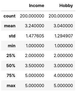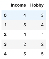 오늘의 가상 데이터는 "소득 수준"과 "취미 시간" 의 두 데이터를 사용한 분석을 해 보겠습니다.