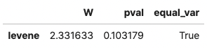Levene의 검정은 다음과 같이 쉽게 구할 수 있습니다.