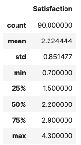 90명의 참여자가 확인됐고,  color와 satisfaction 컬럼이 제대로 로드가 된 것 같습니다.