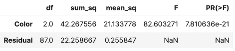 Statsmodels의 경우 "(선형) 모형식"을 구성한 후, 연산(fit)하고 해석(anova_lm)하는 과정으로 통계를 처리합니다.