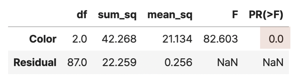결과를 보면 알겠지만, t-test와 달리 ANOVA 모형은 꽤 복잡한 해석 과정이 필요합니다.