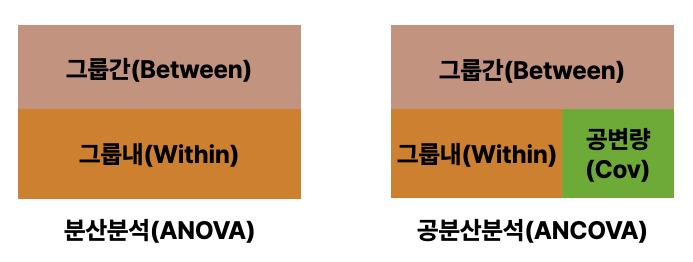 공분산분석은 이 과정에서 우리가 확인하려는 요인 외 다른 부가적인 요소가 전체 분산에 미치는 요인을 줄여 비율 차이를 두드러지게 만드는 기법입니다.